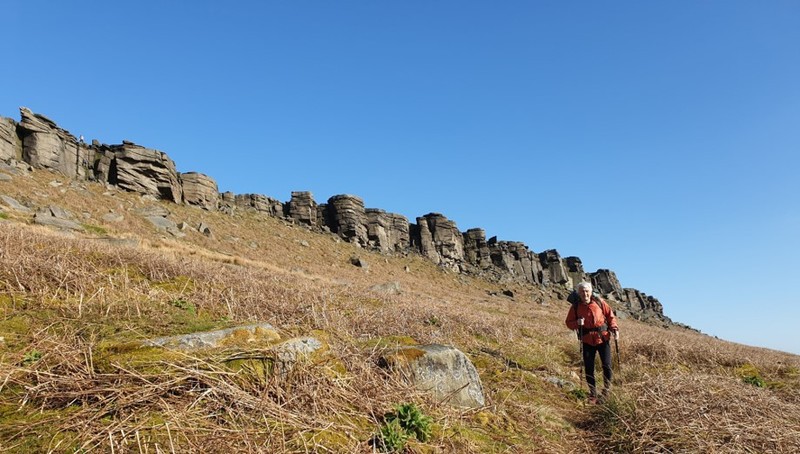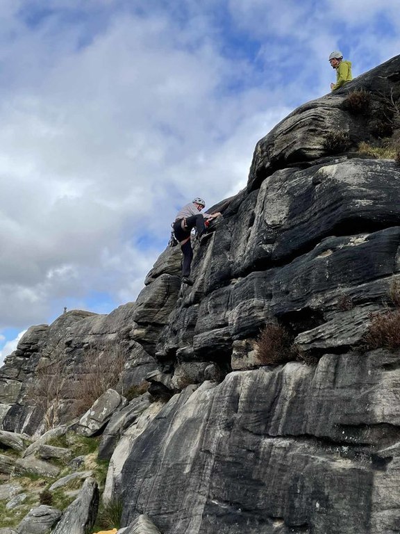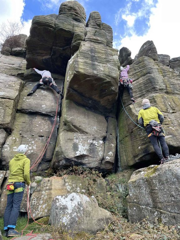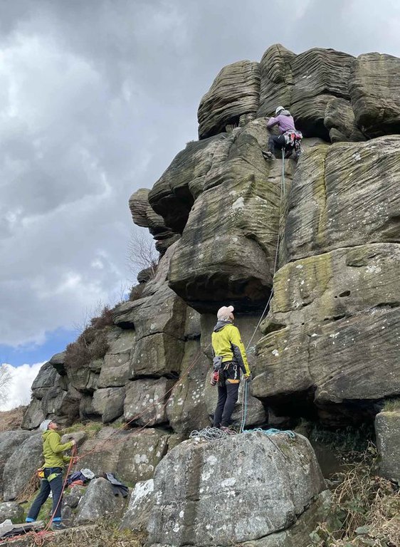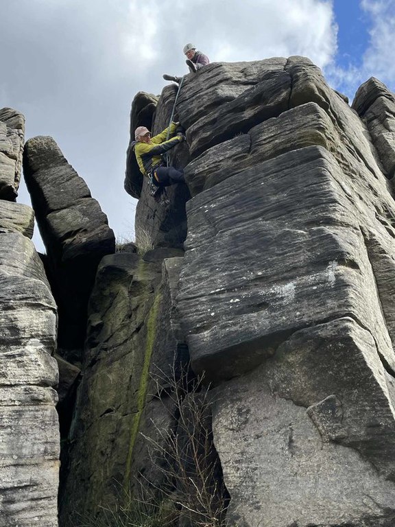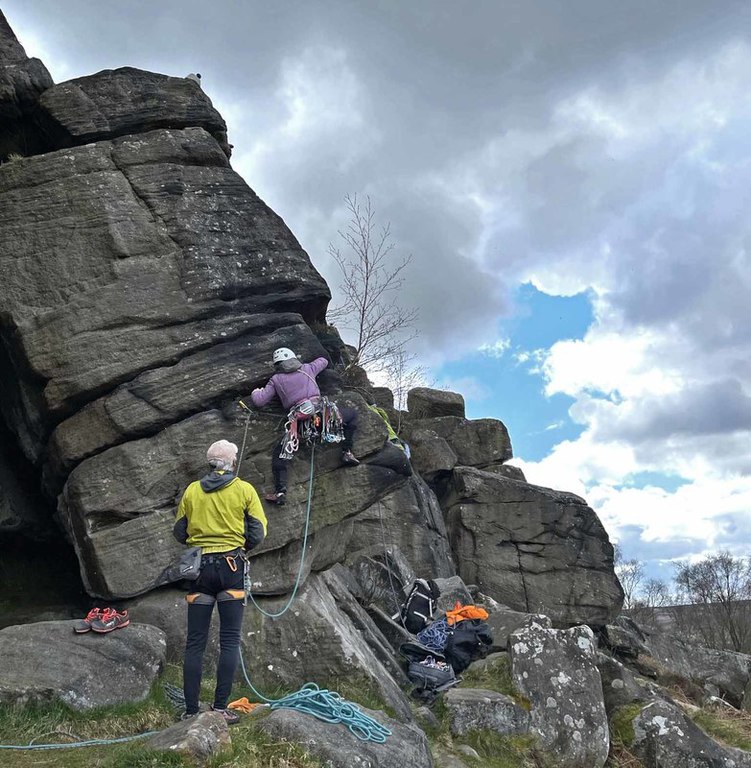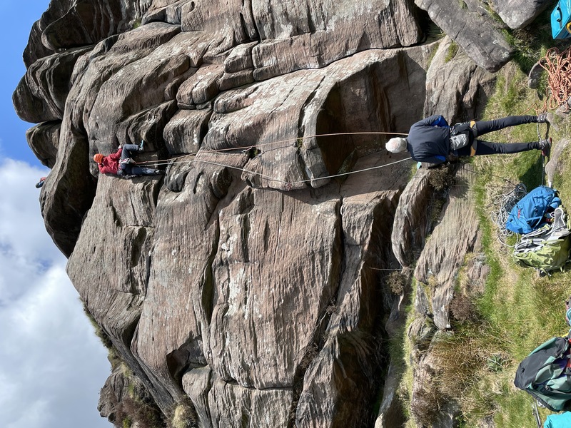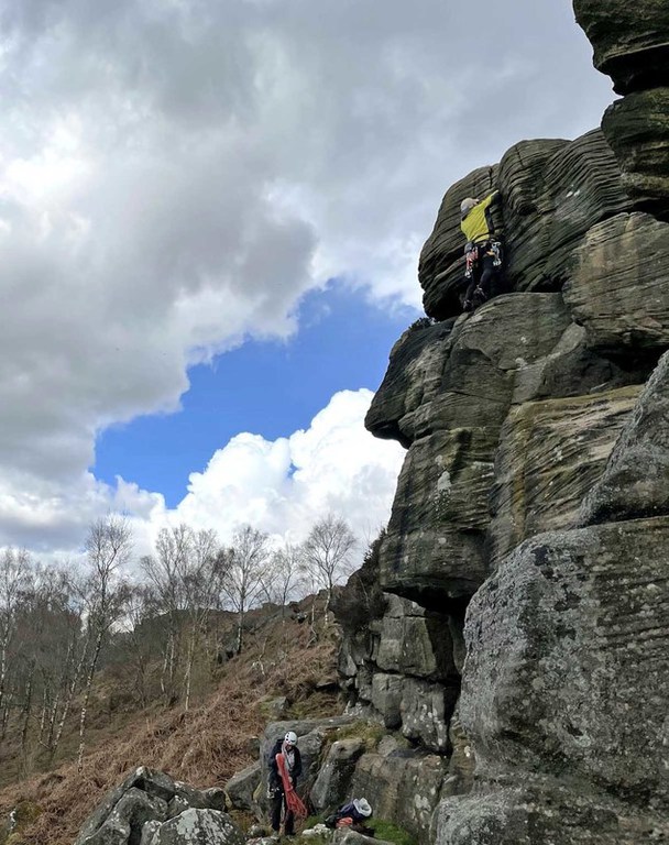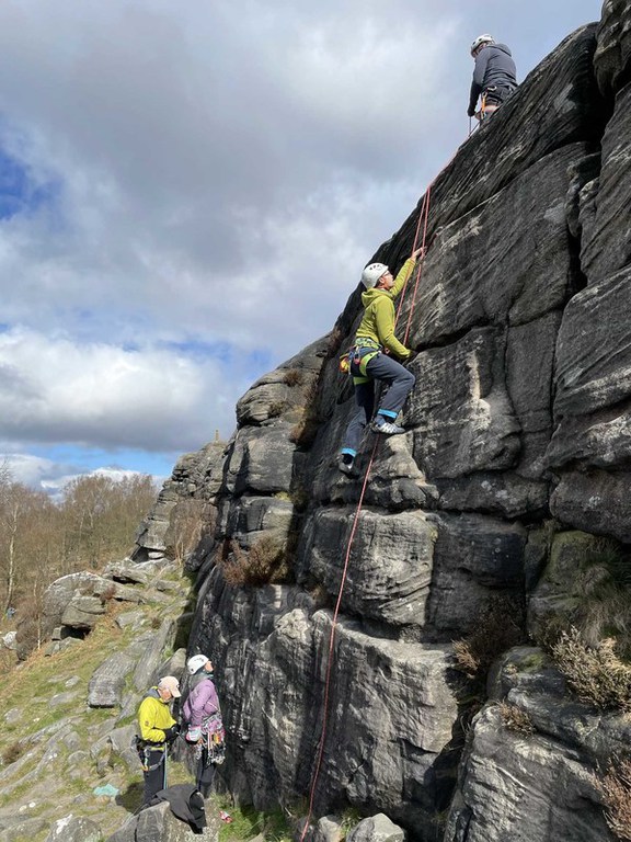 Well we had lovely end of lockdown climbing sessions at Harboro Rocks (Wed eve 31st Mar) and Stanage (Sat 3rd April). At Harboro it was positively balmy with people climbing in tee shirts until the sun went down at which point we had a celebration drink. Quite unexpected and completely the opposite of last year when it snowed (Tony dug out the photos to prove it!). Stanage started very cold, too cold for my fingers to grip confidently but then late morning the weather quietly changed the sun came out and the wind dropped and it turned into a Summer’s day. Quite amazing.