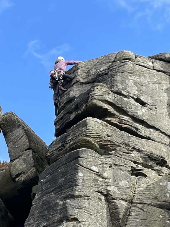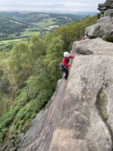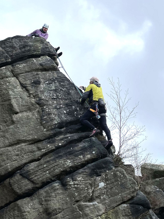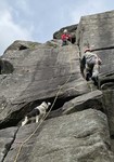 Here are a few photos from a delightful day at The Roaches. Cath and Chris on Left Hand Route, S4b and Gill at the top of pitch 2 of the Valkerie.